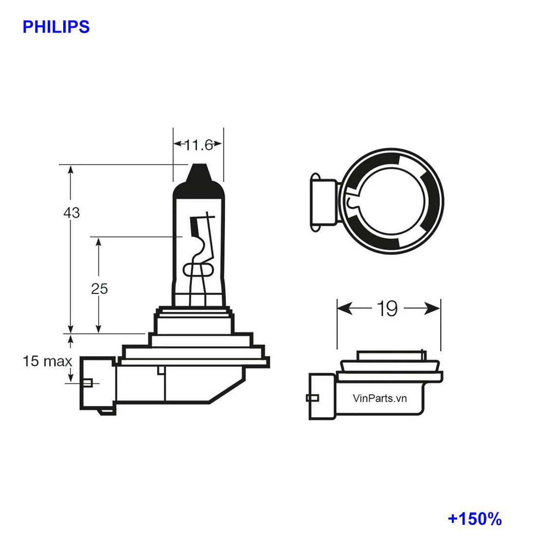 Bóng đèn Halogen Philips H11+150%