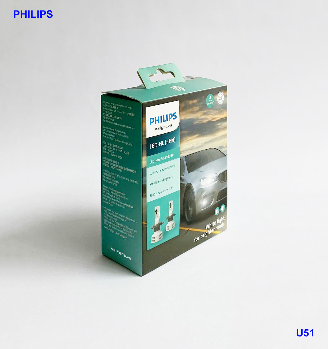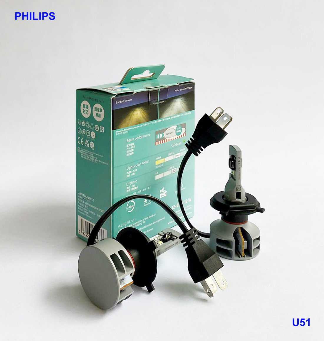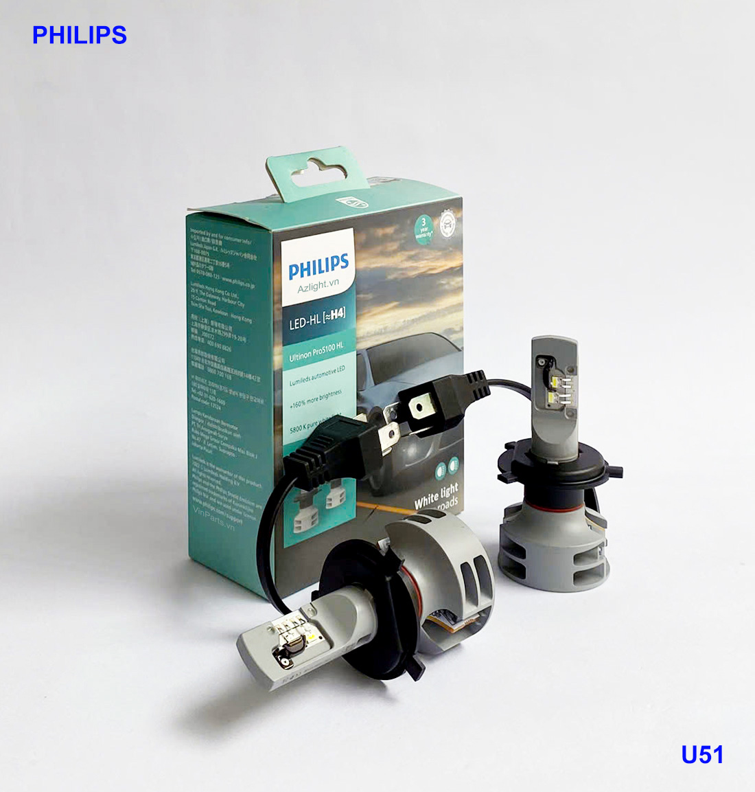Bóng đèn LED Philips H4 Ultinon Pro5100 +160% So sánh